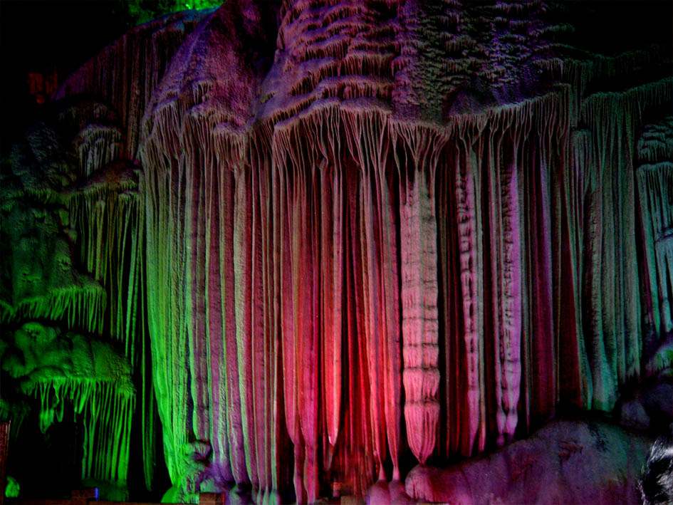 银子岩属层楼式溶洞,现已开发游程约2公里,包括下洞、大厅、上洞三大部分,汇集了不同地质年代发育生长的各种类型的钟乳石,特色景点数十个,以音乐石屏、广寒深宫、雪山飞瀑"三绝"和佛祖论经、独柱擎天、混元珍珠伞"三宝"等景点为代表,栩栩如生,形象逼真。